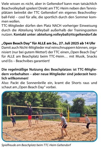 Sommer, Sonne, Sand & Volleyball! Beachfeeling in Geltendorf, So. 27. 7.